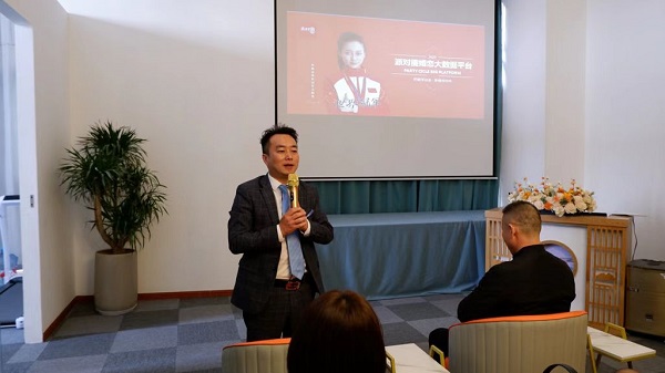 10:30,主持人宣布活动正式开始并介绍与会嘉宾,派对圈科技CEO熊士清首先代表公司致欢迎辞,对与会嘉宾表示欢迎和感谢,并与在场嘉宾分享了派对圈的战略定位及运营模式。熊总在致辞中表示派对圈将在全国2000个区、县招募城市运营商。平台通过城市运营商领导市场合伙人团队,以婚恋数字云店为基点, 汇集辖区所有社区、门店、会所等高流量人群,结合平台自研的AI智能算法技术,通过高清电子显示屏展示同城单身信息,吸引单身及家长注册,实施精准营销。随后,熊总对公司“千城万店战略“及城市运营商的重要作用做了分享。最后熊总表示,公司目标在三年内,通过赋能城市运营商落地“千城万店”战略,打造数字云店系统化、网格化的全国服务网。平台用户数据冲击千万级的海量规模。